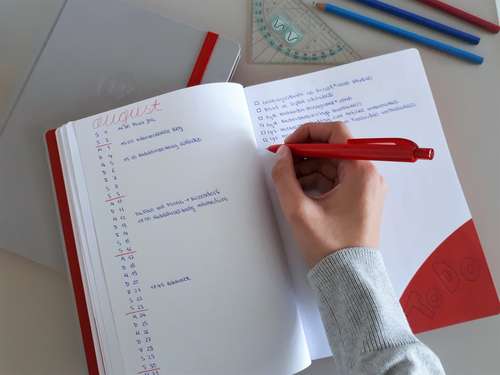 Ist ein Monat vorbei, blättert man am besten die Seiten noch einmal durch und schaut, welche Aufgaben noch offen geblieben sind. Sind sie weiterhin relevant, kann man sie in die Monatsübersicht des folgenden Monats übertragen; ansonsten einfach streichen.