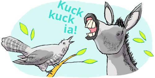 In der ersten Strophe kommt es zu einem Streit zwischen Kuckuck und Esel, wer am besten singen könnte. Strophe 2 beschreibt, wie die beiden Tiere im Wettstreit gegeneinander singen. In der dritten und letzten Strophe stellen die beiden fest, dass gemeinsames Singen auch schön klingen kann.