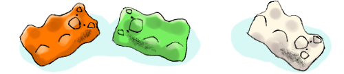 Lisa isst am liebsten die roten und grünen Gummibärchen.