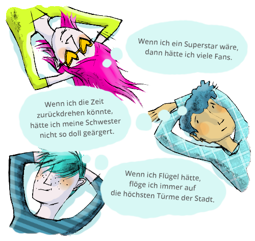 Oder hast du dir schon einmal gewünscht, die Zeit zurückdrehen zu können? Wenn wir etwas sagen möchten, das nicht der Wirklichkeit entspricht, benutzen wir den Konjunktiv II.