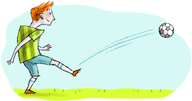 Beispiel: Jonas schießt den Ball.