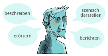 - Erörterung: Erzähler reflektiert, bewertet, kommentiert