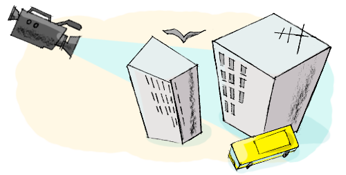 Bei dieser Perspektive wird das Geschehen von oben herab, also wie aus der Sicht eines Vogels, dargestellt. Diese Perspektive ist z. B. für Übersichtsaufnahmen geeignet.
