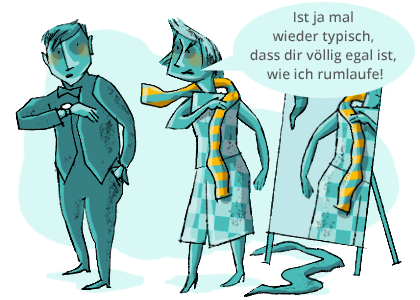 Übertragen auf das Beispiel sagt der Mann zu der Frau:
