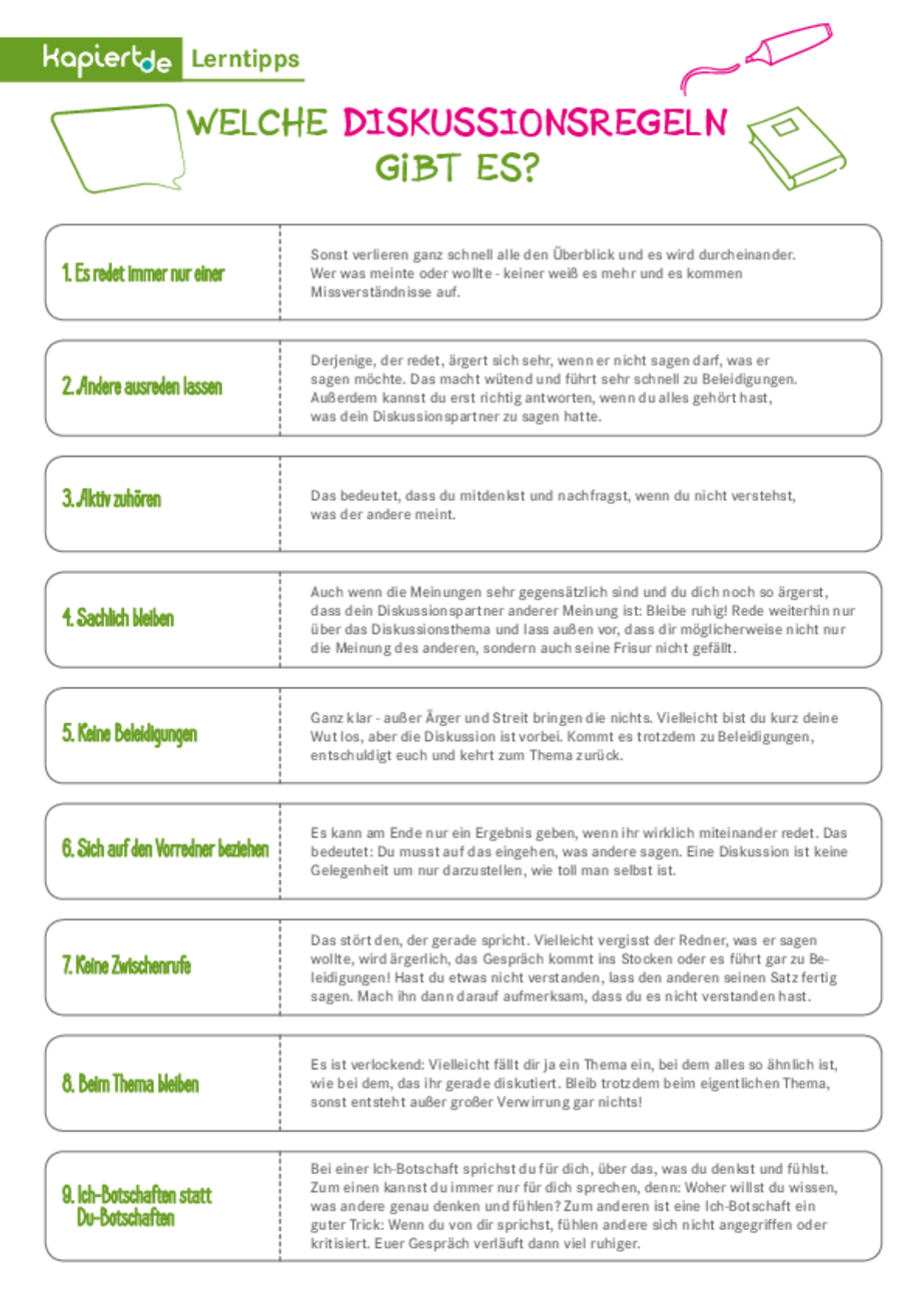 Lerntipp: Welche Diskussionsregeln gibt es?