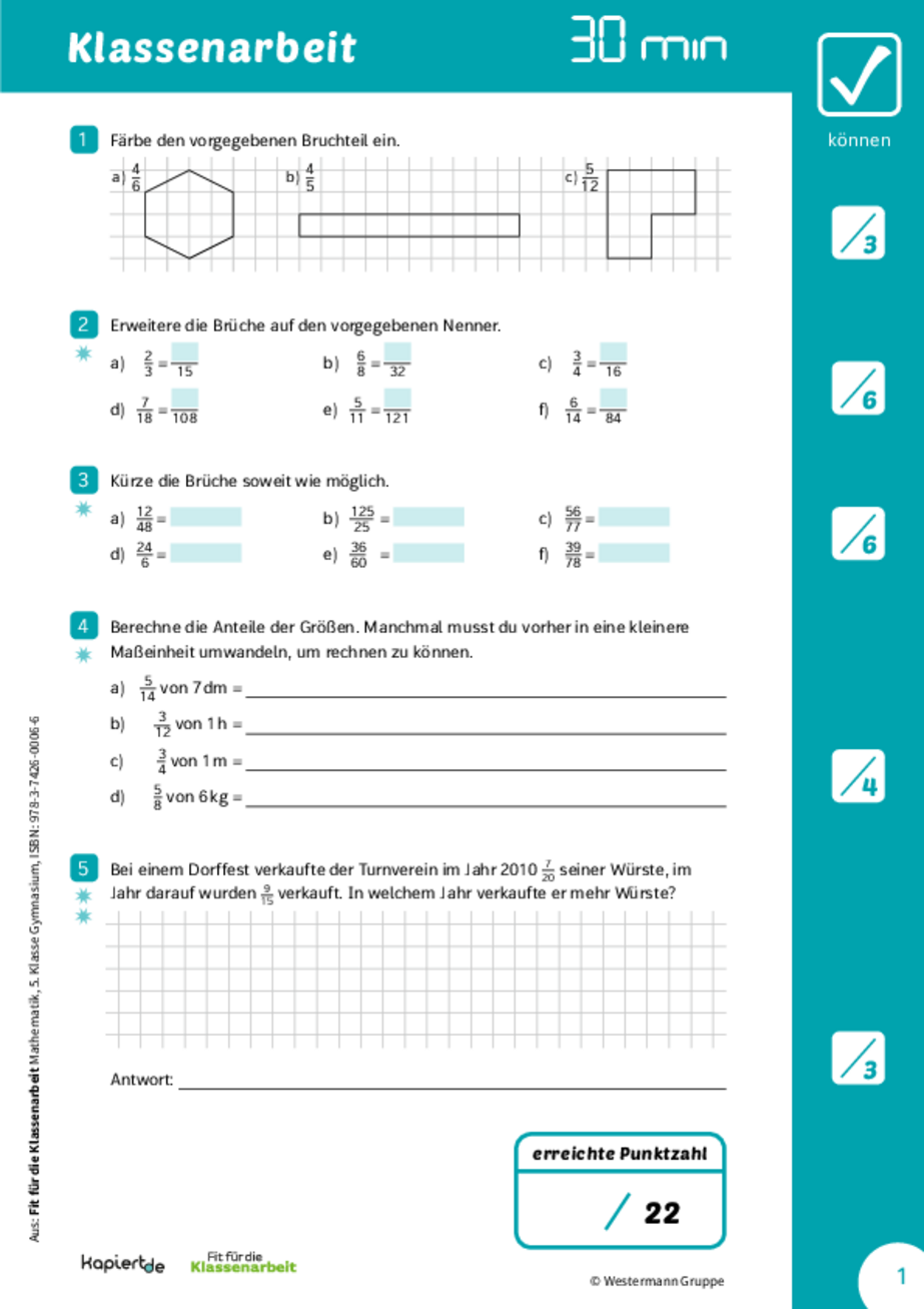Mehr Klassenarbeiten für Mathe, Klasse 5, findet ihr auch in unserer neuen Westermann Reihe Fit für die Klassenarbeit.