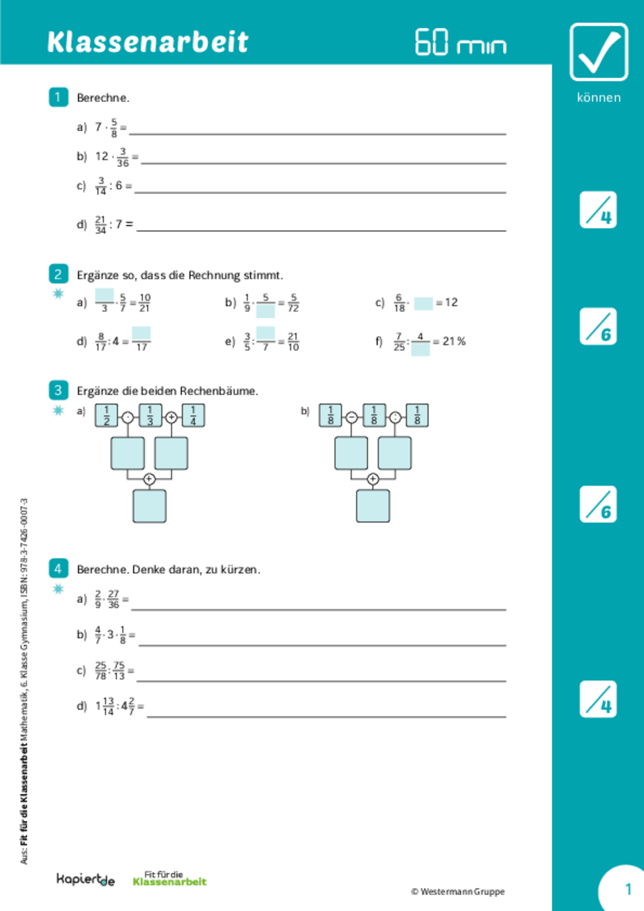 Mehr Klassenarbeiten für Mathe, Klasse 6, findet ihr auch in unserer neuen Westermann Reihe Fit für die Klassenarbeit.