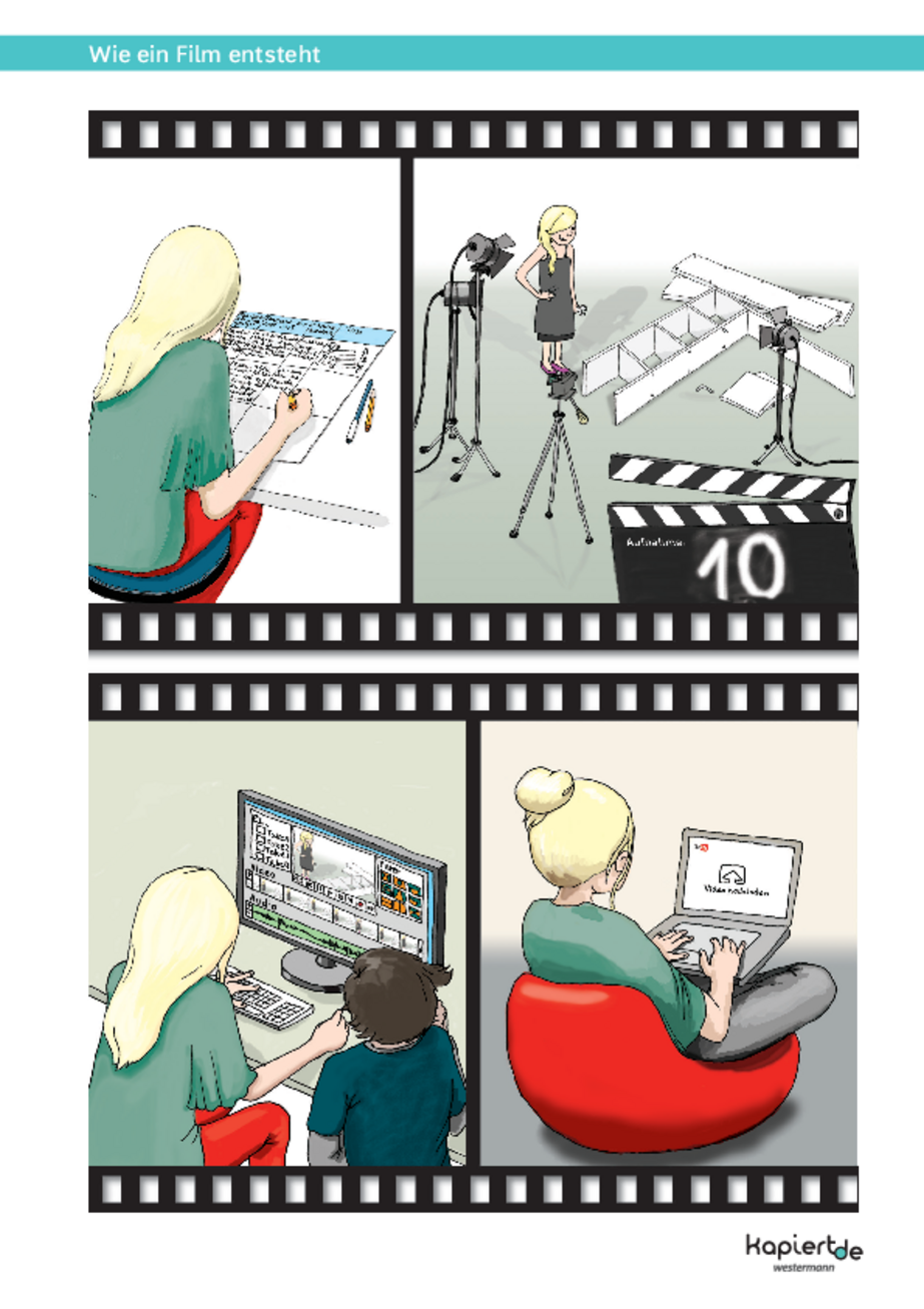 Mit diesem Arbeitsblatt erhalten die Schülerinnen und Schüler einen Überblick über die einzelnen Schritte der Planung, Produktion und Veröffentlichung eines etwas professionelleren Filmes. So lernen sie die wichtigsten Fachbegriffe im Bereich der Filmproduktion. Außerdem werden die eigenen Erfahrungen mit Videoproduktion reflektiert