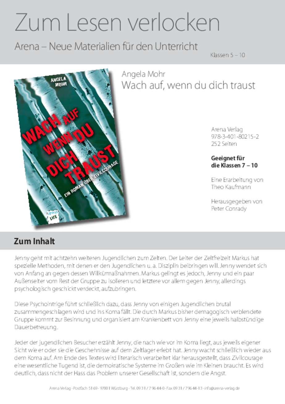 Angela Mohr: Wach auf, wenn du dich traust. Ein Roman über Zivilcourage