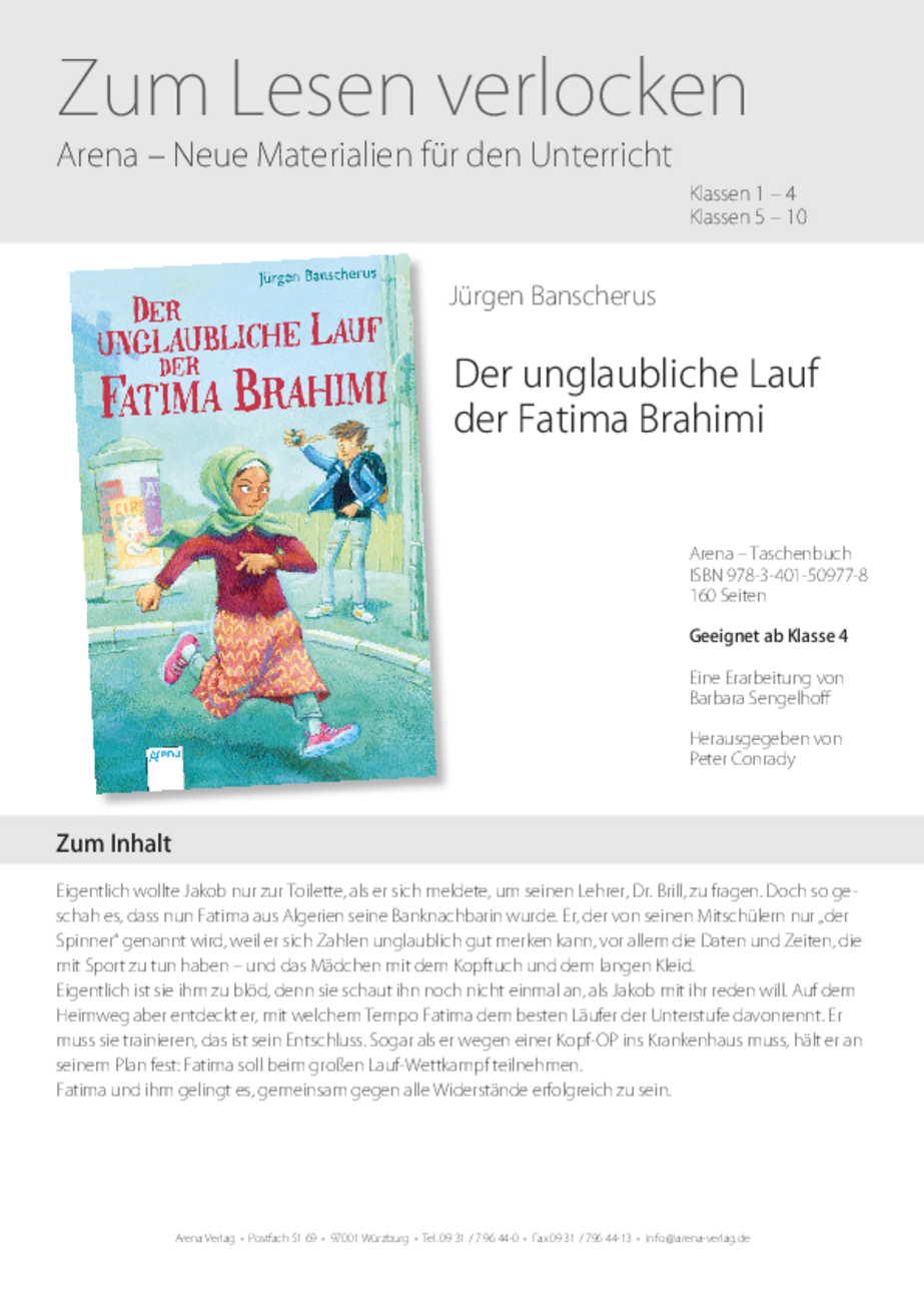 Fatima kommt aus Algerien, ist neu in der Klasse und sieht echt komisch aus mit ihrem langen Kleid und dem Kopftuch. Als Jakob mit ihr reden will, sieht sie ihn nicht mal an! Das ist ihm zu blöd. Doch als er auf dem Nachhauseweg beobachtet, in welch außerirdischem Tempo das Mädchen rennt, setzt er sich in den Kopf, Fatima zu trainieren. Auch als eine Zyste in Jakobs Kopf gefunden wird und ihm eine Operation bevorsteht, hält er an seinem Plan fest. Und das gegen alle Widerstände – die mobbenden Mitschüler, seine Krankheit und auch gegen den Willen von Fatimas Familie.