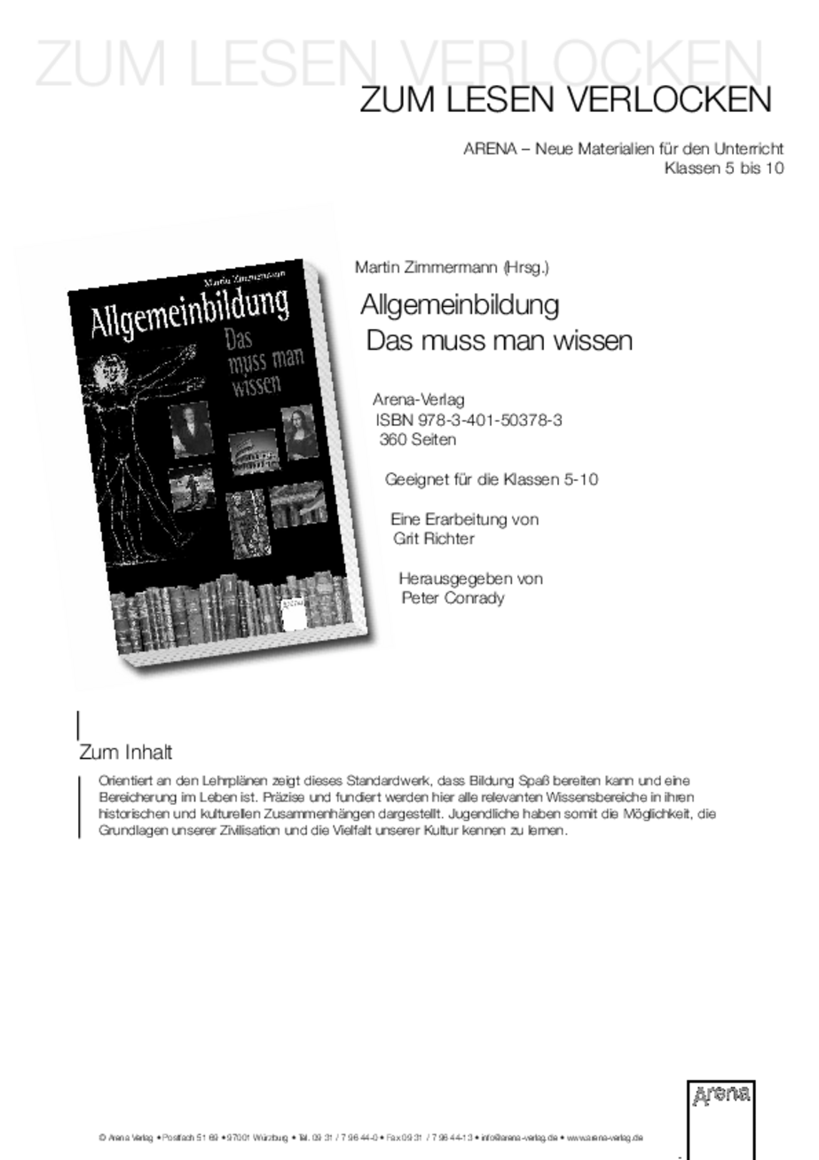 Wissen ist ein faszinierendes Abenteuer – das zeigen die spannenden Beiträge dieses Standardwerks. Frei von Wissenschaftsjargon, dennoch präzise und fundiert, werden alle relevanten Wissensbereiche – orientiert an den Lehrplänen – in ihren historischen und kulturellen Zusammenhängen dargestellt. Der Herausgeber, Prof. Dr. Martin Zimmermann, hat dieses Werk unter dem ganz entscheidenden Aspekt zusammengestellt: Bildung macht Spaß und ist eine Bereicherung des Lebens!