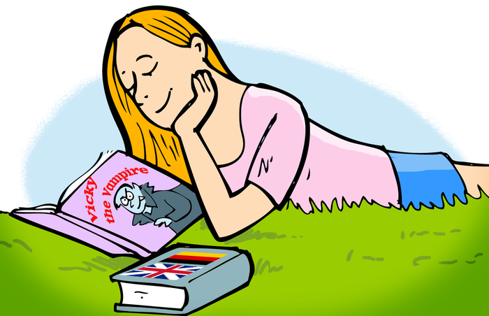 Wenn du magst, legst du noch ein Wörterbuch neben dich. So kannst du Wörter, die du lernen möchtest, nachschlagen und so deinen Wortschatz nach und nach erweitern.