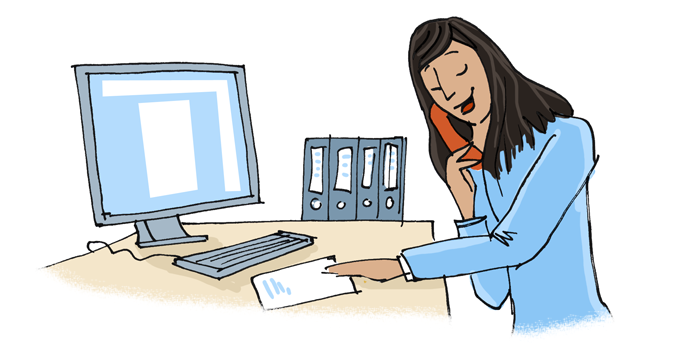 Eine Sekretärin macht Telefonanrufe und schreibt Briefe.