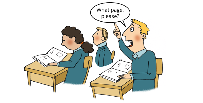 Zum Beispiel, wenn sie oder er erklärt, wie du eine Übung bearbeiten sollst, oder wenn sie oder er nach deinen Hausaufgaben fragt.
