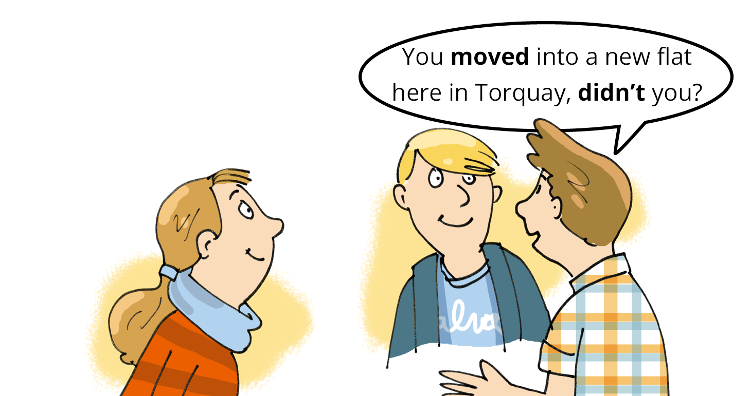 Brendon will find new friends (positive), won’the (negativ) ?Steht das Verb in einem Aussagesatz ohne Hilfsverb in der Vergangenheit, benutzt du did bzw. didn’t in der Bestätigungsfrage (question tag) so wie in der Sprechblase rechts.