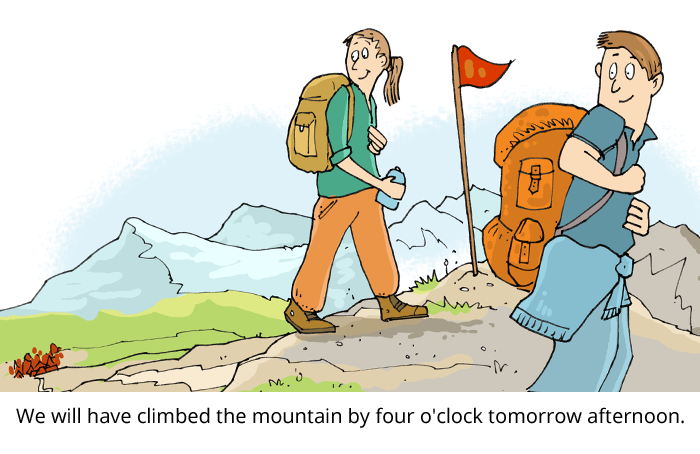 • We will have climbed the mountain by four o’clock tomorrow afternoon.