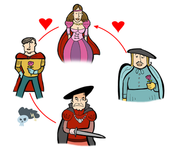 Wenn ein Drama viele Charaktere hat, bekommst du am einfachsten einen Überblick, wenn du dir eine Figurenkonstellation zeichnest. Du führst also alle wichtigen Personen auf, die in dem Theaterstück vorkommen. Dann ziehst du zwischen ihnen Verbindungslinien mit Symbolen, die für das Verhältnis stehen.