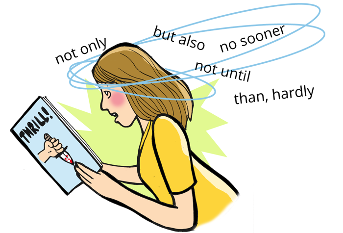 Manchmal musst du dann das Hilfsverb „did“ im Nebensatz verwenden:Hardlydid she expect the gardener to be the murderer.Only aftershe had met the landlord, did she become suspicious.Only whenfinding the silver knife, did she realize that she wouldn’t need a confession from the maid any longer.