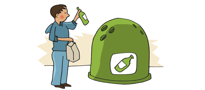 Bottles are recycled in the bottle bank.