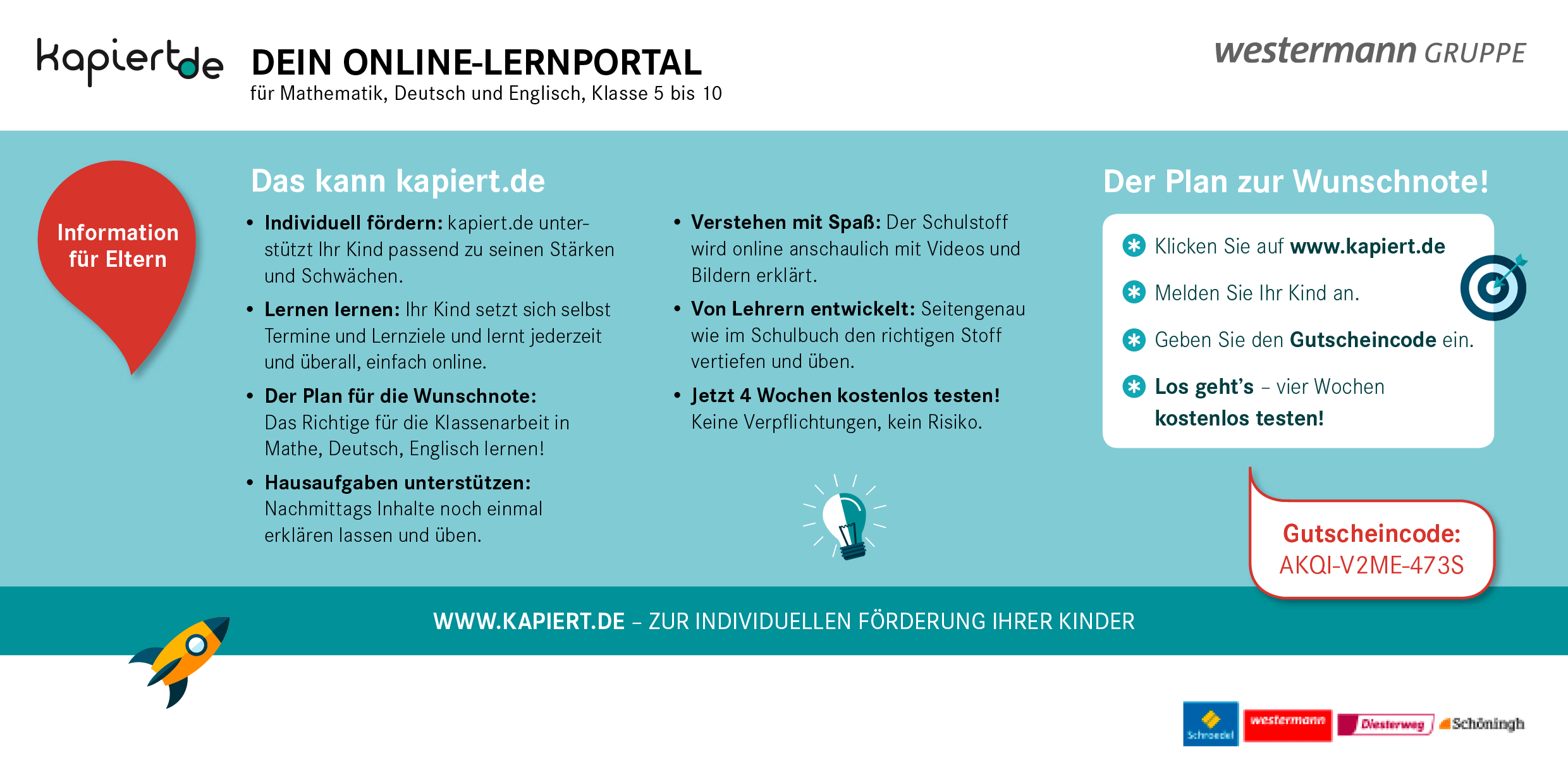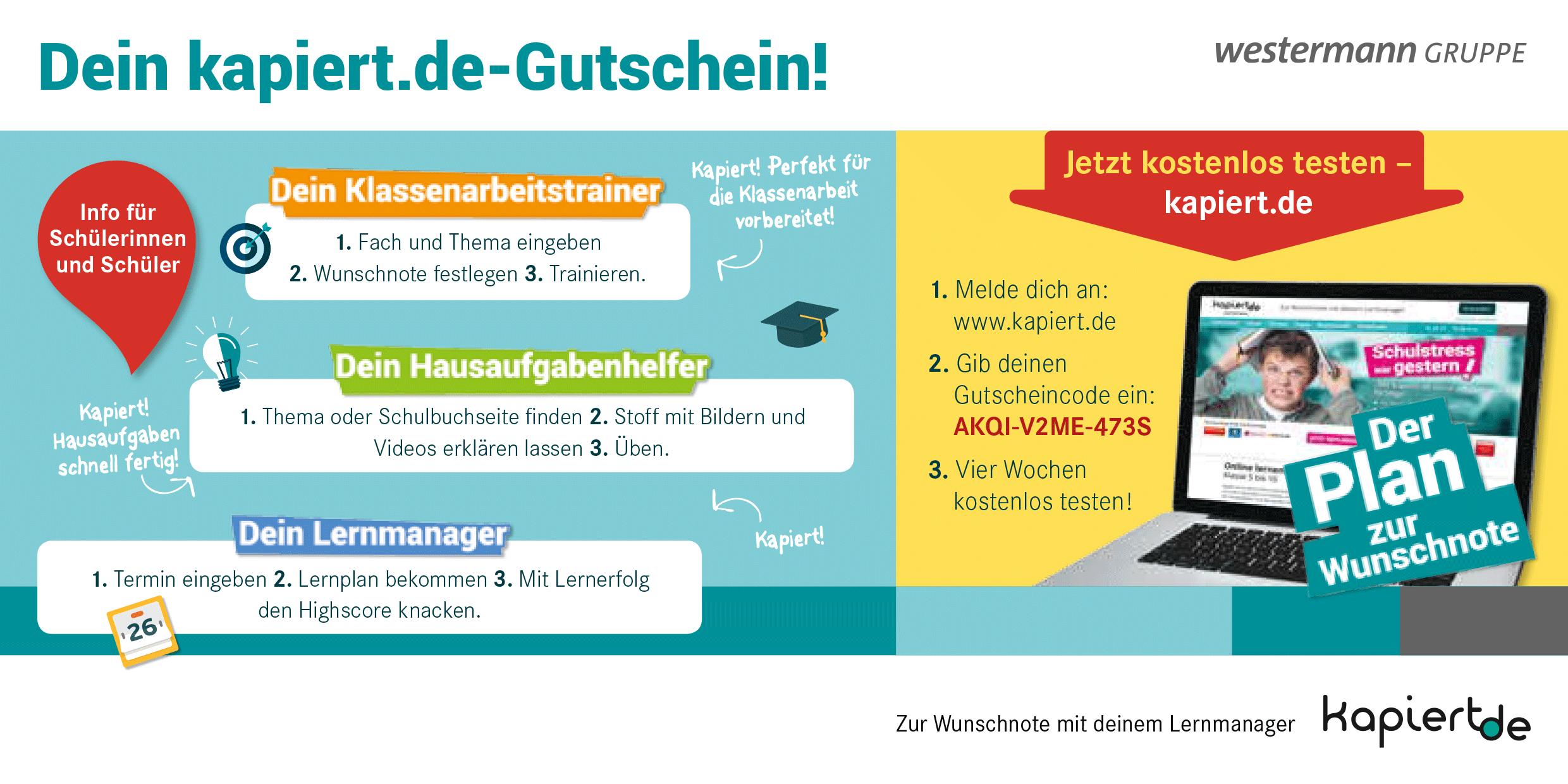 kapiert.de weiterempfehlen: Ihre Schülerinnen und Schüler können kapiert.de 4 Wochen kostenlos testen!