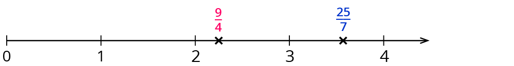Damit weißt du, dass der Wert von $$25/7$$ zwischen 3 und 4 liegt.