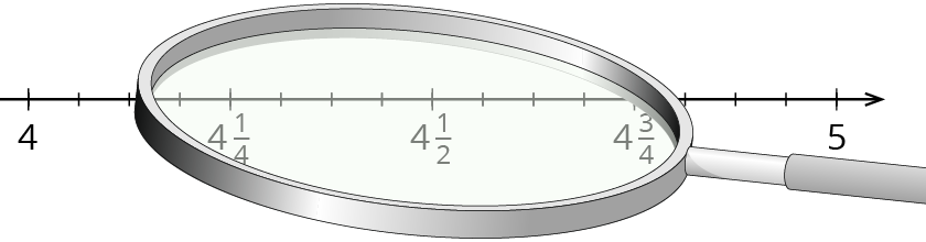 Diese Zahl liegt zwischen zwei benachbarten Natürlichen Zahlen, nämlich zwischen der $$4$$ und der $$5$$.