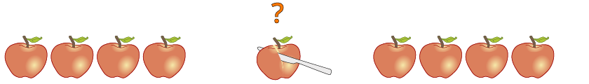 Teilst du $$8$$ Äpfel auf $$2$$ Personen auf, erhält jeder$$8/2=4$$ Äpfel.
