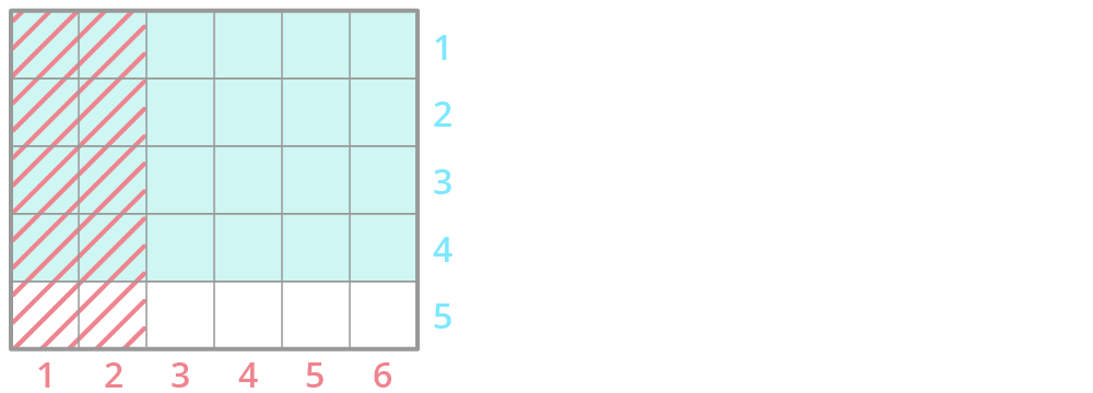 Jetzt teilst du das Ganze in die andere Richtung und markierst den anderen Bruch. Hier sind das 2 von 6 Spalten.
