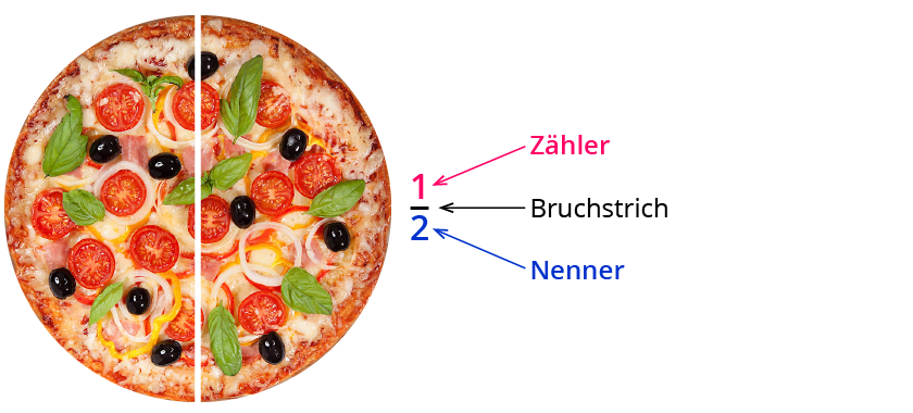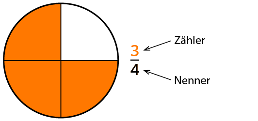 Ein Bruch bedeutet: Teile das Ganze in so viele Teile wie der Nenner vorgibt. Nimm so viele Teile davon, wie der Zähler vorgibt.