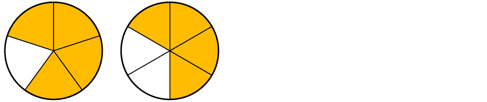 $$2/3$$ ist kleiner als ein Ganzes. Das erkennst du daran, dass der Zähler eine kleinere Zahl besitzt als der Nenner. $$6/5$$ ist größer als ein Ganzes. Du könntest auch $$1 1/5$$ dafür schreiben.