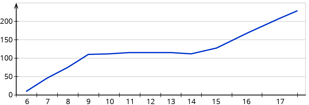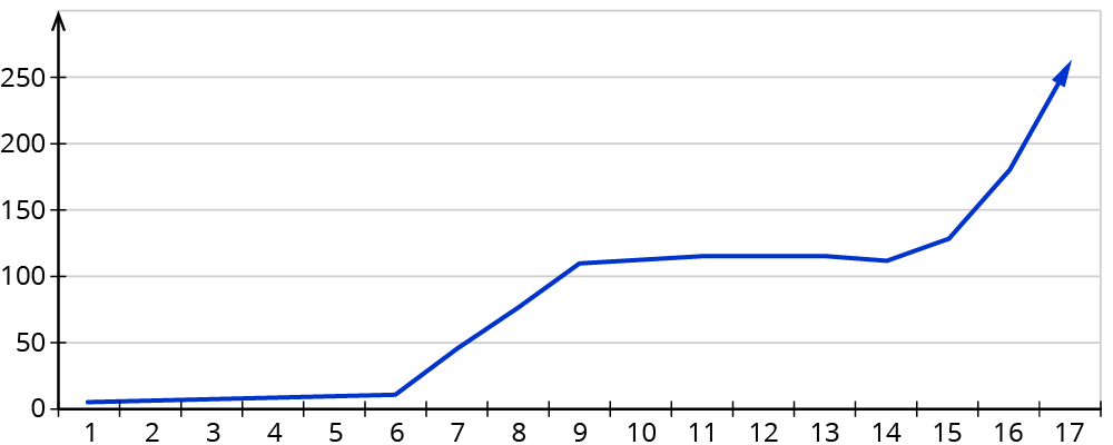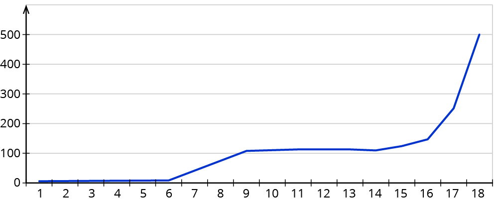 Hier vorerst ein letztes Diagramm. Schau genau hin - entdeckst du die Manipulation? Auf der x-Achse ist die Einteilung nicht gleichmäßig.