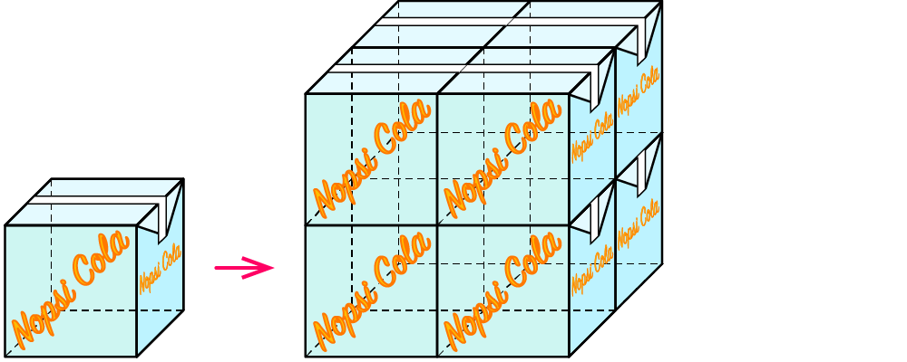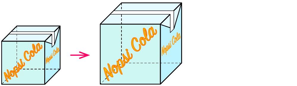 Schau genau hin - hier wurde jede Seite verdoppelt. Das Volumen des neuen Würfels ist damit 8-mal so groß wie das Original. Welch eine Übertreibung!