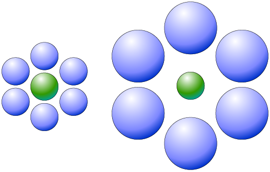 Schau dir die Abbildung an und entscheide spontan, ob der grüne Kreis in der Mitte der beiden Bilder jeweils gleich groß ist.