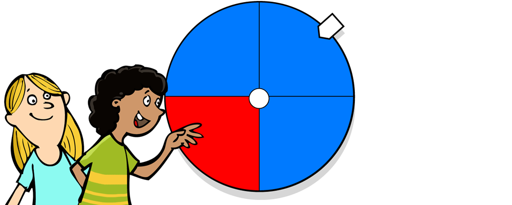 Tony und Carla drehen ein Glücksrad. Jeder darf zweimal hintereinander drehen. Gewonnen hat, wer zweimal rot dreht.