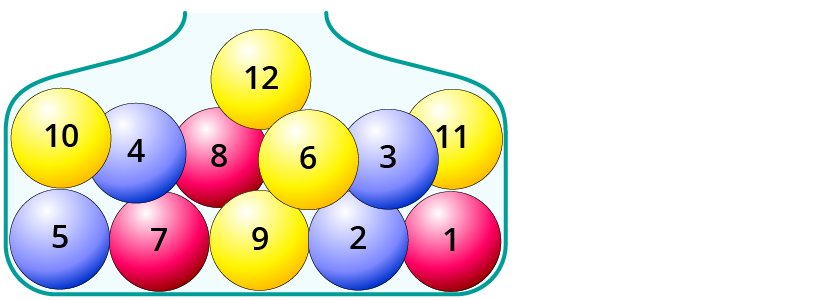 Bei der Urne kannst du als Ergebnisse ROT oder GELB oder BLAU bekommen.