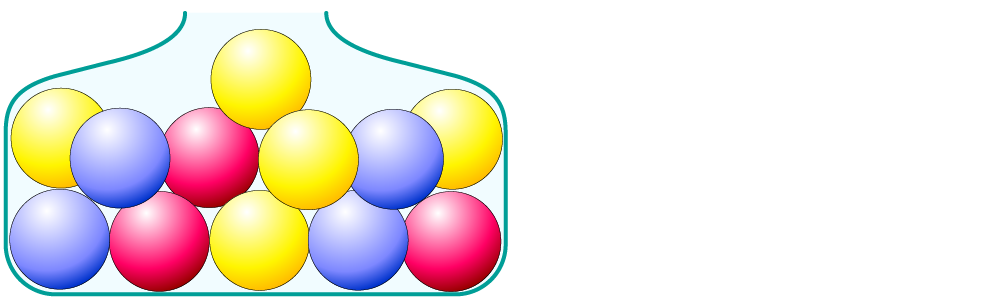 Mengen fassen einfach irgendwelche Elemente zusammen. Reihenfolge und Anzahl sind nicht wichtig. Deshalb kommt in der Menge nicht mehrmals ROT vor, obwohl ja 3 rote Kugeln in der Urne sind.