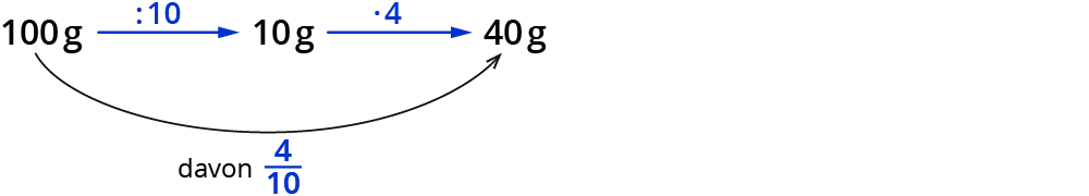 Du willst vom Ganzen (100 g) zum Bruchteil (40 g) kommen.