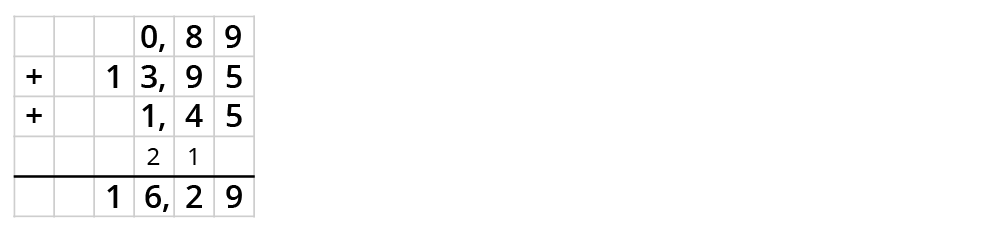 In eine Mathe-Aufgabe übersetzt: $$18,6-0,89+5-13,95-1,45 $$.
