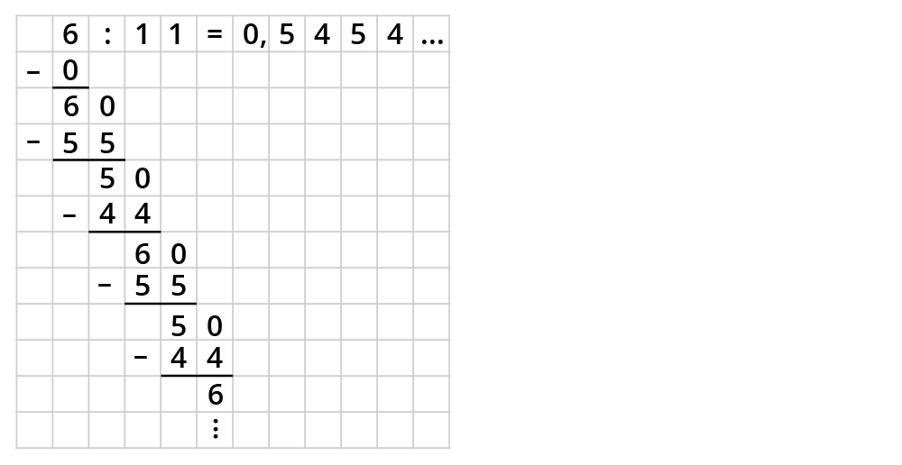 Wandle $$6/11$$ in einen Dezimalbruch um.