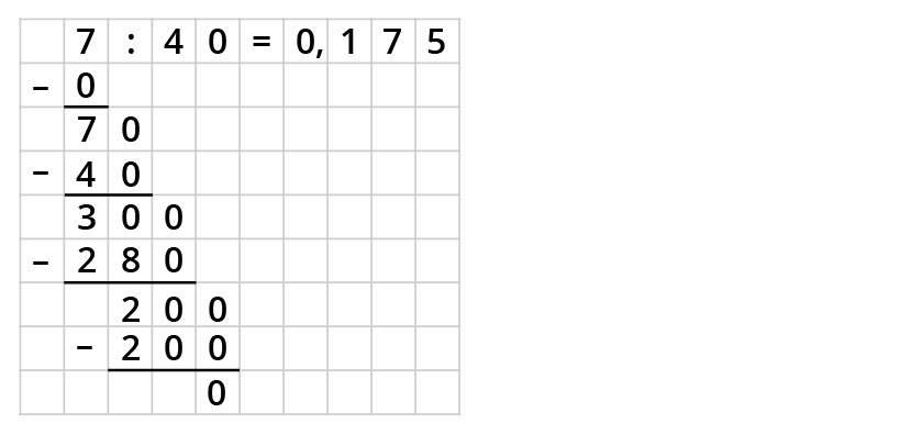 $$7/40\stackrel(25)=175/1000=0,175$$
