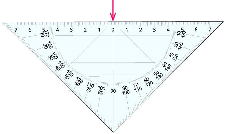 Das Geodreieck legst du auch mit der 0 an den Anfangspunkt der Strecke. Nur ist hier die 0 in der Mitte der längsten Seite des Geodreiecks. Dann kannst du die Länge der Strecke ablesen.