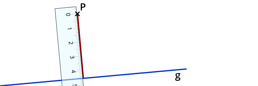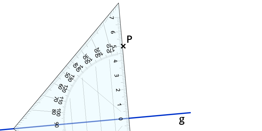 Lege das Geodreieck mit der Mittellinie auf die Gerade. Schiebe das Geodreieck so lange, bis du den Punkt erreichst. Zeichne die Senkrechte.