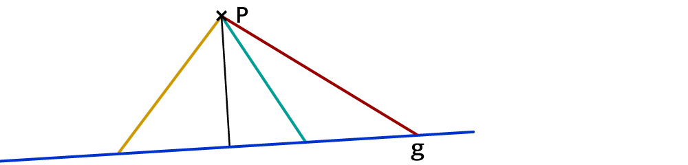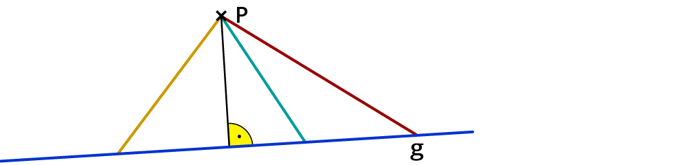 Du kannst ja verschiedene Verbindungsstrecken vom Punkt P zur Geraden einzeichnen.
