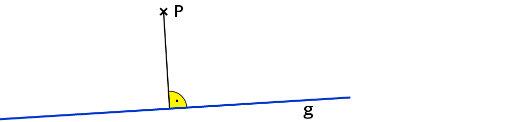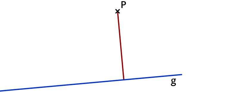 Den Abstand zwischen Punkt und Gerade zeichnest du mithilfe einer senkrechten Strecke durch den Punkt P.