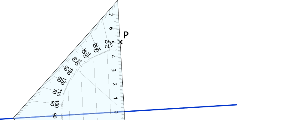 Lege das Geodreieck mit der Mittellinie auf die Gerade. Schiebe das Geodreieck so lange, bis du den Punkt erreichst. Es ist egal, von welcher Richtung du schiebst.