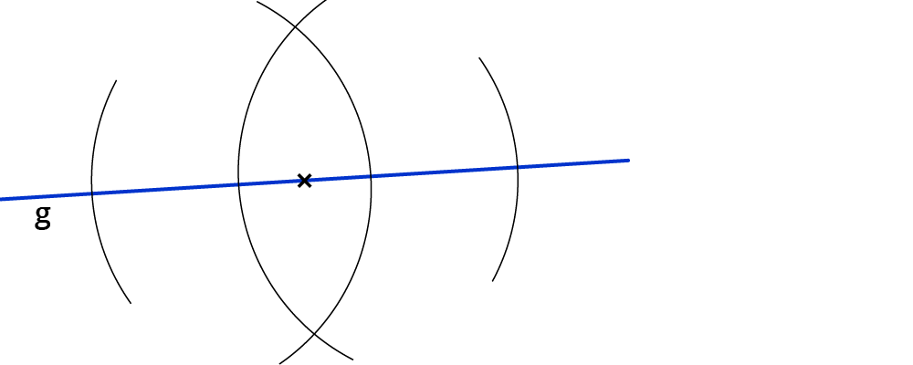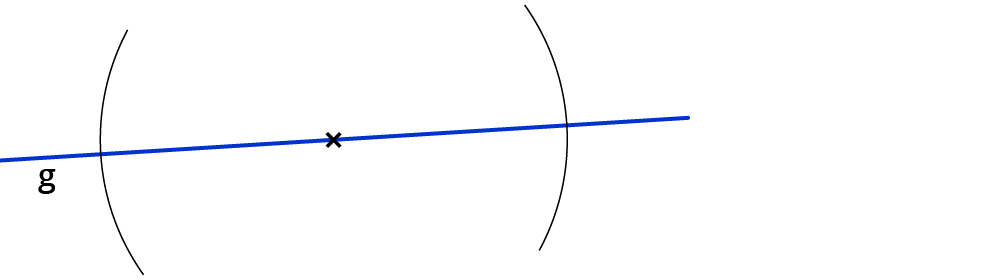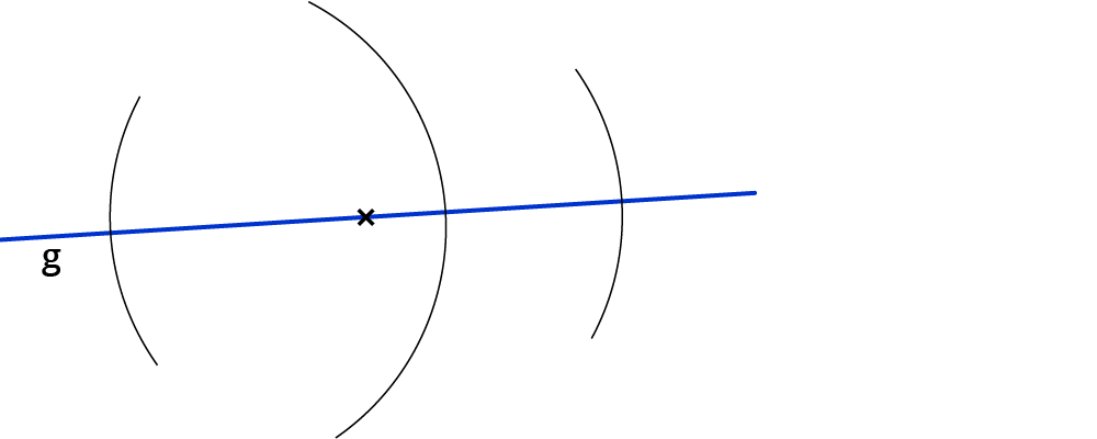 2. Setze mit der Zirkelspanne zwei Markierungen auf der Geraden. Diese sind gleich weit von der Einstichstelle entfernt.
