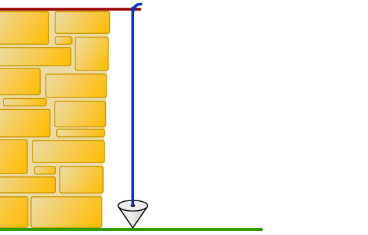 Hier wird mit dem beschwerten Band geprüft, ob die Mauer senkrecht steht. Das Band ist hier das Lot.