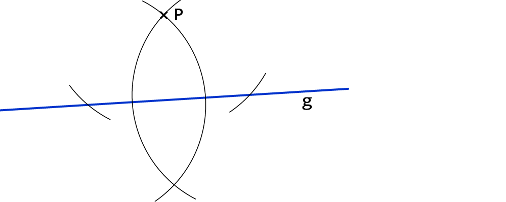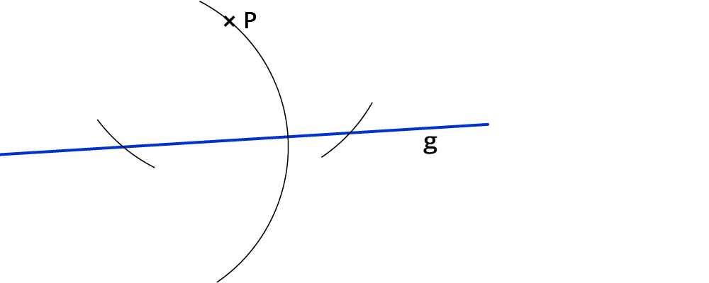 1. Stich in den Punkt P ein. Zeichne einen Kreisbogen, der die Gerade zweimal schneidet. Es entstehen 2 Markierungen auf der Geraden.