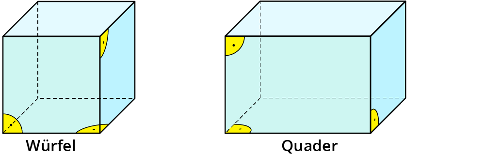 Bei Körpern gibt es senkrecht zueinander liegende Kanten im Würfel und Quader.
