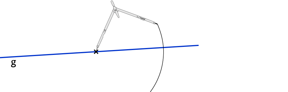 1. Stich mit dem Zirkel auf der Geraden ein. Stelle eine beliebige Zirkelspanne ein.